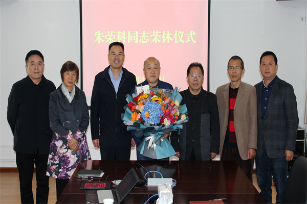 场站服务中心党委书记刘有全、副主任邵会侠向朱荣科同志赠送了鲜花。刘有全代表班子发言,深情回顾了朱荣科同志在学校学习、工作42年间深度参与和见证学校的跨越式发展,在学校多个单位事业的奋斗发展中做出的瞩目成绩,高度评价了朱荣科同志担任场站管理处处长(主任)期间对场站建设与发展做出的贡献,真诚感谢朱荣科多年来勇于担当、睿智果敢、扎实认真的优良作风给场站带来的积极影响,衷心祝愿朱荣科同志好好享受退休生活,健康快乐,希望朱荣科保重身体,继续发挥智力优势为学校和场站事业发展建言献策。