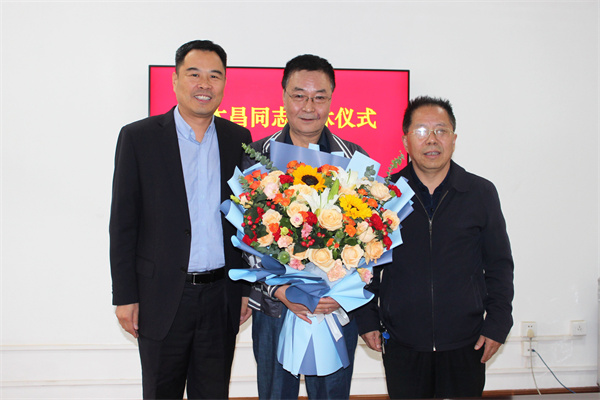 党委书记刘有全、副处长(副主任)黄伟向王木昌同志赠送鲜花