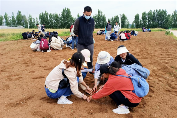 5月23日上午,资环学院水土保持与荒漠化防治专业73名本科生在何海龙教授和彭巍萍老师带领下,来到曹新庄试验农场开展农事认知和地表粗糙度测定专业实习。