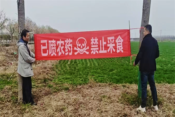 小麦化除后,为防范周边群众进地采挖野菜,咸阳试验站及时在多处悬挂喷药警示横幅,并安排专人进行安全巡查。