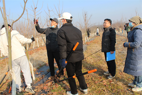 杨勇教授向学生们讲解了果树树体结构、基本树形识别、冬剪基本方法以及现代农业果园冬管技术。果树冬季修剪实习是果树学的重要环节,学习基本理论、基本知识、基本技能,并通过亲自动手实践,掌握果树整形修剪采用的具体方法,理论联系实际,既能丰富学生们的实践经验,又能提高发现、分析和解决问题的能力。