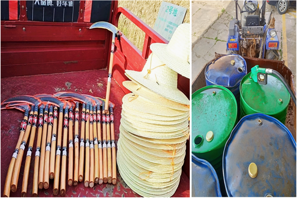 镰刀、草帽、柴油等物资储备