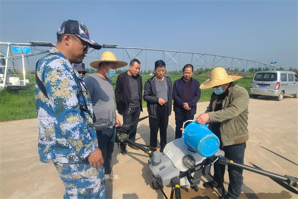 为切实做好本次“一喷三防”工作,农场班子研讨后决定采用自购无人机和外租无人机飞防作业相结合的防治策略。为发挥政府贴息贷款项目给农场新购置的“大疆T-40”植保无人机的专业效能,农场自4月中旬设备交付之日起,安排刘欣、胡洋群两名同志及时对接供应商进行专业操作培训,并在农场12亩自种地里反复“清水作业”熟悉操作技能,熟练掌握操作本领,确保大面积作业时的防治效果。