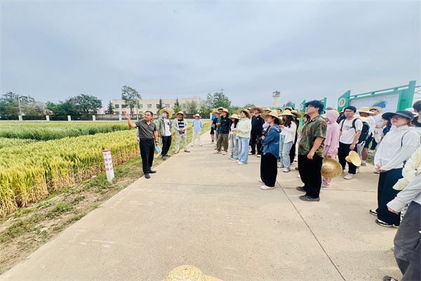 任忠哲副场长从资源现状、历史沿革、成果贡献、当前重要任务等方面介绍了农场的基本情况。农业技师蔡东明为同学们带来一场干货满满的小麦育种知识培训。正在田间收集试验材料的农学院宋瑜龙副教授化身现场导师,为学生们演示小麦生长各环节的观察与记录方法,耐心讲解每个阶段的要点,包括如何识别不同生长阶段特征、评估病虫害影响,以及优化田间管理措施等。学生们积极围拢,认真聆听、踊跃提问,现场学习氛围浓厚。