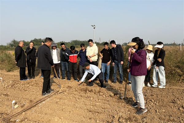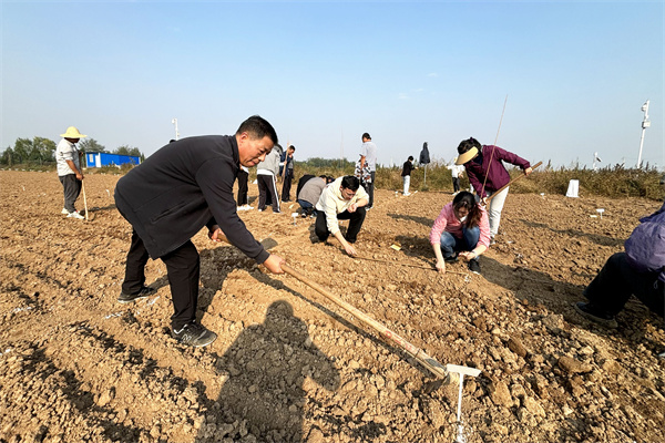 金秋十月,曹新庄试验农场的试验田里专家教授正在按照种植计划机播或人工点播着“三夏”期间收获的种子,为未来选出好品种播下希望。10月16日下午,农场按照青年教师实践锻炼之耕种体验模块,组织11名青年教师和10名农场职工一起,来到闵东红教授选种圃开展耕种体验实践活动。