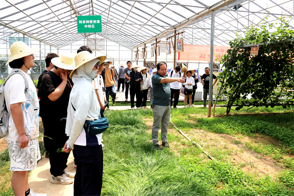 在曹新庄试验农场,职工蔡东明围绕小麦遗传育种,介绍了小麦的生长习性、遗传规律以及栽培管理技术等专业知识,同学们听得津津有味,不断地进行交流和讨论。蔡东明悉心答疑解惑,并带领学生们参观小麦数控小区精量播种机,从工作原理、设计结构等方面详细介绍了播种机播种质量高、出苗均匀度好的性能和能显著提高小区实验结果的真实性、准确性的优越性。通过实践教学,同学们不仅加深了对小麦遗传育种和栽培管理技能的认知,也增强了为农业科研奋斗的信念。