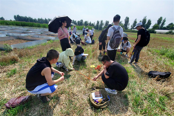 6月29日下午,资环学院2018级水土保持与荒漠化防治专业1-3班90名本科生在何海龙副教授等3名指导教师带领下,来到曹新庄试验农场开展“地表粗糙度测定”教学实习。